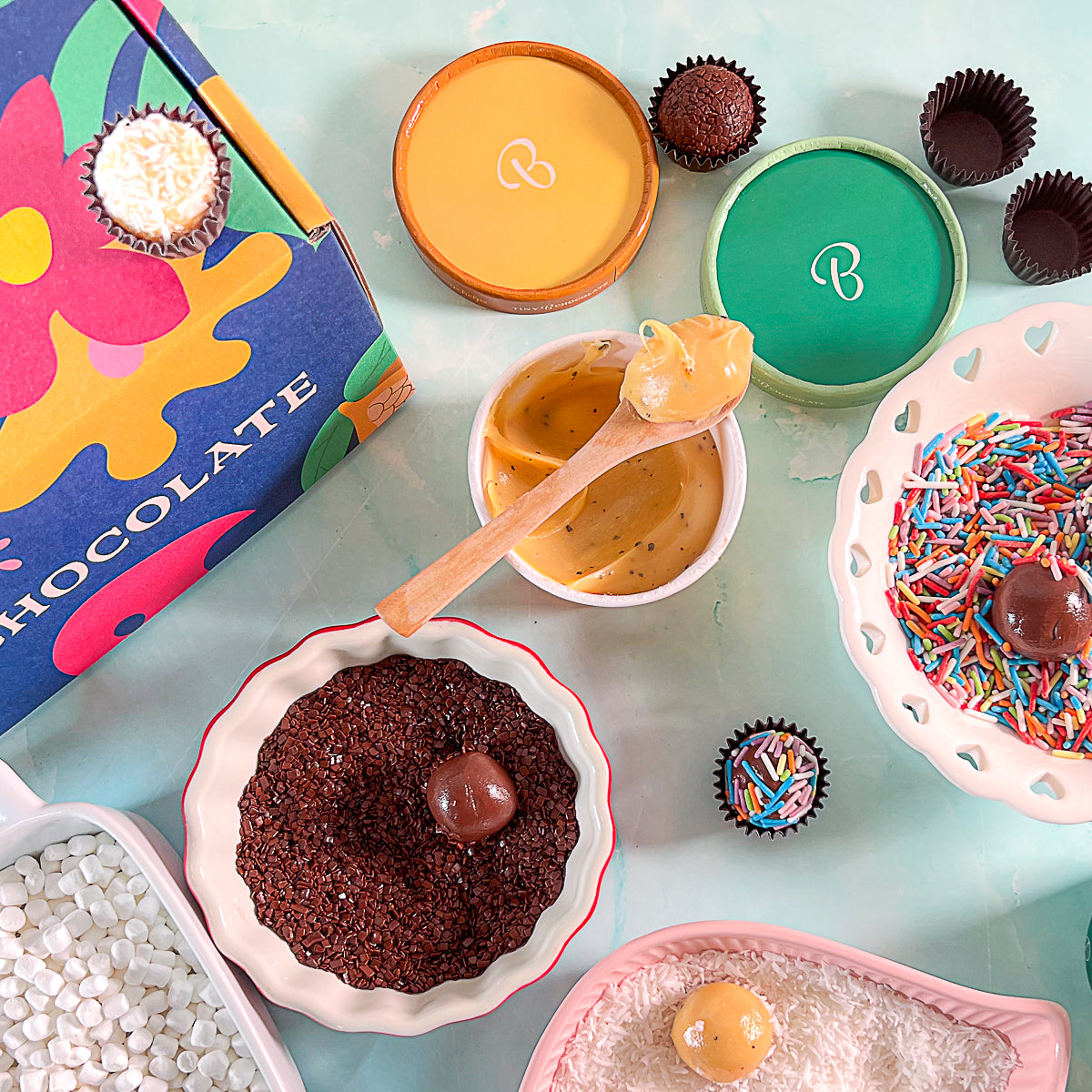Shop BrigadeirosIt’s Brazil’s favorite treat – a bite-sized chocolate delight that’s sensuously creamy, a round pop of rich flavor. And there’s nothing tiny about these brigadeiros. Each bite is outrageous – intense chocolate, hand dipped in fine spices and nuts for assorted flavorful pleasures.