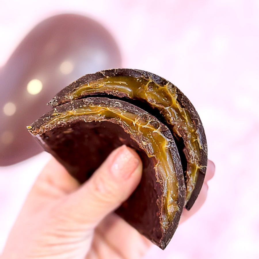 Inside, you’ll find a smooth salted caramel brigadeiro that melts into every bite.