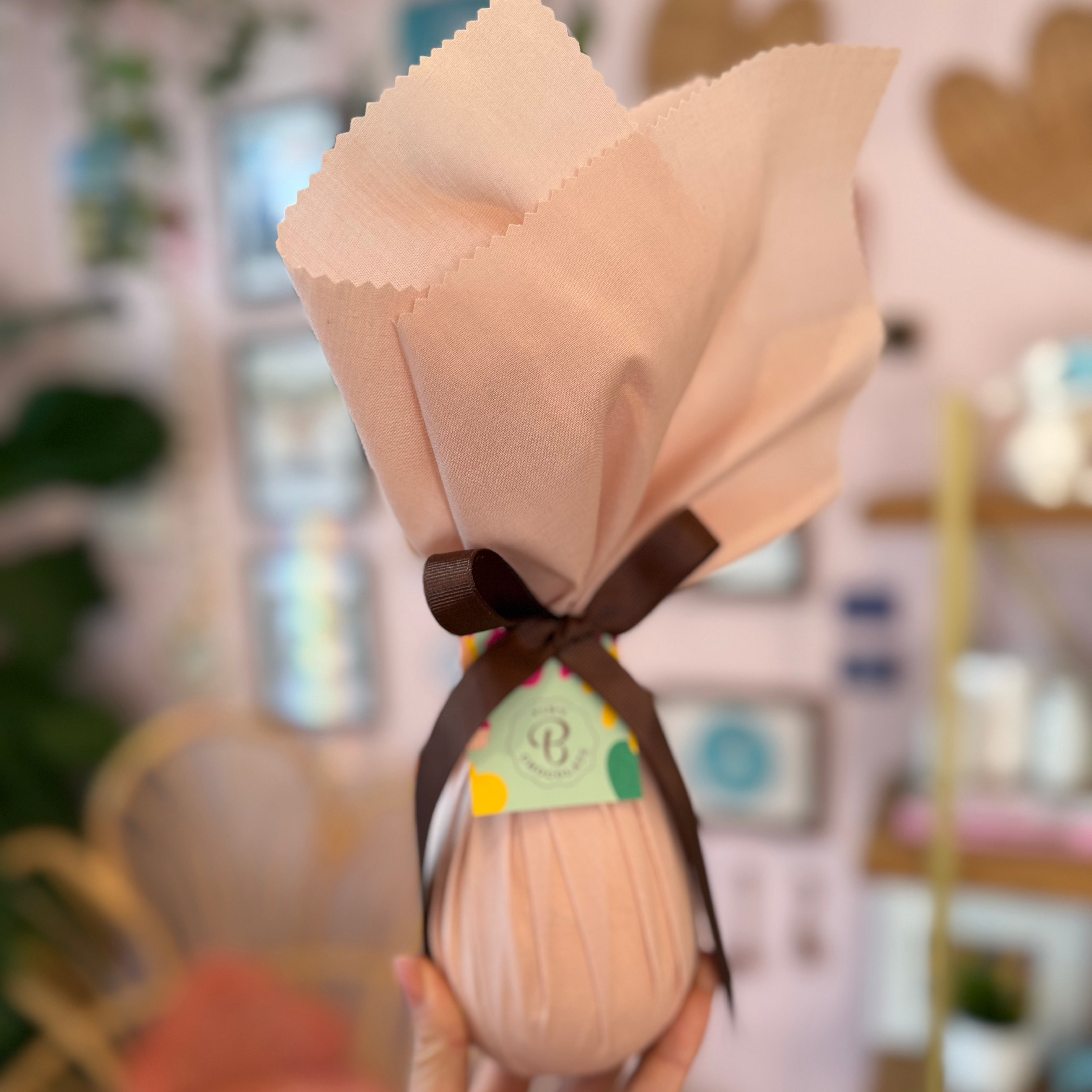 Each egg is made by hand and wrapped in fabric with a beautiful ribbon — our signature touch for Easter.